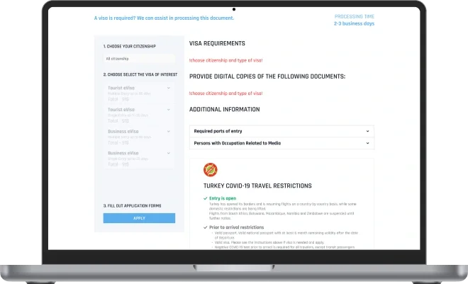 We have developed a convenient online platform that helps to easily prepare documents for travel to any country in the world.