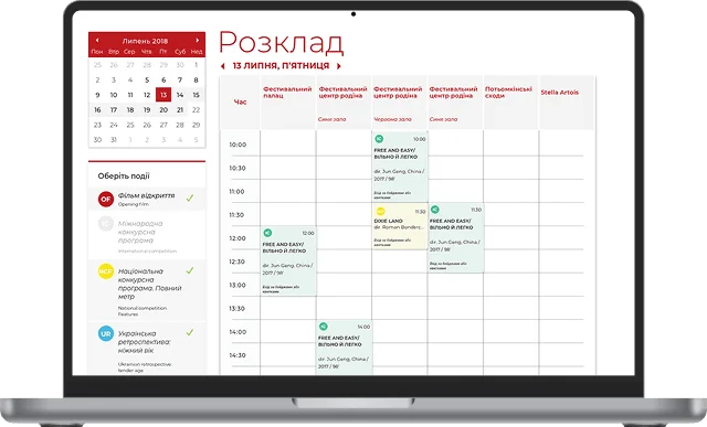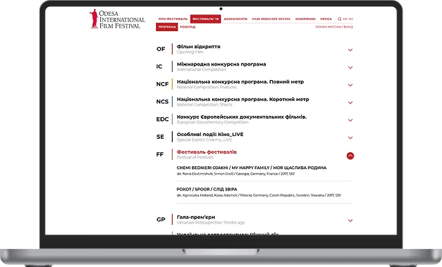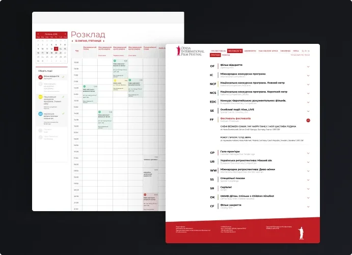 Замовники звернулися до нашої команди з амбітним завданням. Одеський міжнародний кінофестиваль мав на меті повністю відмовитися від стороннього провайдера, який організовував продаж квитків та трансляцію розкладу показів.